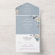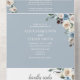 Rustic Boho Flowers Script Winter Dusty Blue All In One Invitation