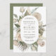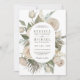 Rustic Boho Ivory Roses Sage Green Leaves Wedding Invitation