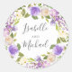 Rustic Boho Purple Floral Monogram Wedding Classic Round Sticker