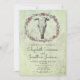 Rustic boho chic style wedding invitation featuring a southwest style cow skull and roses floral wreath with a textured sage background and handwritten style typeface.