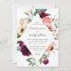 With rustic boho styling, this luscious floral wedding invitation features a rhombus diamond-shaped frame surrounded by colourful watercolor peonies, roses, anemones, wildflowers and mixed greenery. The stylish colour palette includes rich hues of pink, burgundy red, peach, off-white, green and teal. The type face pairings used in the text template convey your wedding details in modern style with the bride and groom's names in lower case text. The colour scheme used in this invitation is a wonderful choice for weddings in any season of the year. Personalize the text with your wedding details.
