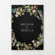 Rustic Boho Wildflower Photo QR Code Black Wedding Tri-Fold Invitation