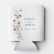 Rustic Boho Wildflower Wedding Can Cooler. Keep your drinks cool and your vibe warm with this wildflower wedding can cooler, wrapped in a design featuring watercolor botanicals in terracotta, rust, and muted green. The crisp white background and elegant black script add a polished, nature-inspired flair that fits seamlessly with your event. Both practical and pretty, it's a must-have for outdoor celebrations or personalized bridal party gifts—customize it to match your big day.