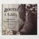 Toast the bride to be when you personalize the charming Rustic Boots and Bubbly Floral Wedding Shower sparkling wine Labels. Perfect for a casual country western barn party bridal shower. Each rustic chic custom bottle label features a black and white sepia tone farm photograph of a pair of brown leather cowboy boots and weathered barn wood with white flowers adorning the corners.