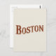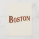 A vintage-style design featuring the word "Boston" in a rustic, distressed font with a textured background. The colour palette is warm and inviting, with shades of brown and cream.