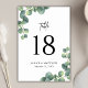 Rustic Botanical Eucalyptus Greenery Wedding Table Number