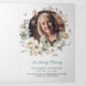 This elegant funeral program features a rustic botanical design that brings a serene and peaceful ambiance, ideal for commemorating a loved one's life. The cover features a touching photo framed by hand drawn delicate eucalyptus leaves and cotton flowers, which add a natural and calming touch to the overall layout. The interior pages provide ample space for an obituary, order of service, poem or prayer, acknowledgments, or any other text, with a coordinating botanical border along the bottom that enhance the sense of tranquillity. This program not only serves as a practical guide for the service but also as a beautiful keepsake that attendees can cherish, reflecting the love and memories shared with the departed.