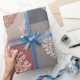 Give your gifts a touch of timeless charm with this rustic botanical wrapping paper. Inspired by vintage block printing, the design features elegant leafy medallions in muted tones of red, grey, cream, and blush, arranged in a patchwork-style layout.