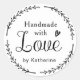 Custom-designed Handmade with Love stickers and labels for Crafts, DIYs, and products featuring your personalized brand name with black and white rustic botanical wreath and hand lettering design.