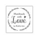 Custom-designed Handmade with Love stamp for Crafts, DIYs, and products featuring your personalized brand name with rustic botanical wreath and hand lettering design.