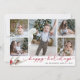 Share holiday greetings with these rustic chic Christmas photo cards featuring five favourite photos in a collage layout (4 square and one portrait/vertical). "Happy Holidays" appears along the bottom in hand lettered script typography, accented with pine cones, berries and red holiday flowers on a painted bough. Personalize with your name(s) and the year along the bottom. Cards reverse to a rustic buffalo check plaid pattern in matching holiday red and white.