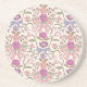 Boho and rustic coaster featuring hand drawn illustration of bows and flowers in pink and purple colours.