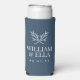 Full-colour custom printed can coolers make a fun and functional wedding favour your guests will love! Personalize the template with the bride and groom's names or monogram initials. Add your wedding date, the city, state or venue name or any other custom text. This modern rustic logo-style design features mixed typography in navy blue and white colours. Use the design tools to choose any background colour, edit the fonts or upload your own photos to create a completely custom wedding favour to match your wedding colours and style!