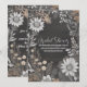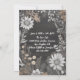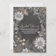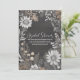 The image shows an invitation card for a bridal shower. The background is a dark, wood-like texture with floral illustrations in white and shades of grey. The flowers and leaves create a border around the edges of the card, with a more concentrated arrangement at the top and bottom.