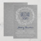 Rustic Bridal Shower invitation in Grey and Navy with white wreath and font. You can change the colour of the font, so if you like this design, but your wedding colour is coral or turquoise or red, you can change the colour to match. Also, if you need to write more, like a poem or directions or surprise information, you can add text on the back of the card for no extra cost.