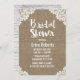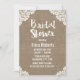 Rustic Bridal Shower Vintage White Laced Burlap Invitation