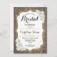 Rustic Wood Bridal Shower. Elegant design with faux glitter gold and dark brown wood pattern. Features white roses and script font. Perfect for a stylish country style bridal shower. Customize with your own details.
