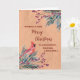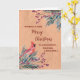 Merry Christmas for brother and her family card with rustic watercolor greenery and cardinal and vintage paper pattern.