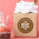 Affordable custom printed round return address stickers personalized with your family name and return address. This rustic modern holiday design features distressed MERRY CHRISTMAS lettering on a brown background. Use the design tools to choose any background colour and edit text fonts and colours to further customize your own unique holiday return address labels.