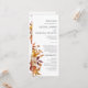 The wedding program features a rustic design with brown foliage and autumn fall colours. It includes elegant floral leaves and botanical elements, showcasing fall earthy tones and a vintage floral wreath. The program outlines the order of the ceremony with classy typography and is designed with whimsical touches for a charming feel. Perfect for an autumn wedding. Fully Customizable. Personalize it with your details.