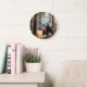 Rustic watercolor big bear clock has a watercolor design. Image of a large brown bear strolling out of the woods. Personalize this with a name, place of message.