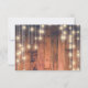 Rustic wedding RSVP card with a wood background with string lights. The date to RSVP by has a labelled text box to help you customize it for your day. If you need to customize it further you can click the "customize it" button to change size, font or text colour. Please visit our store and you will see we have coordinating products for in this line. We offer invitations, table cards, thank you cards, save the date cards, wedding favours and more!