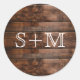 Rustic Brown Wood Texture Monogram Initials Classic Round Sticker