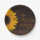 Rustic Brown Wood Yellow Sunflower Wedding Paper Plate