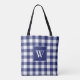 Rustic Buffalo Plaid Blue White Monogram Initial Tote Bag