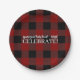 Rustic Buffalo Plaid Celebrate Custom Red & Black Paper Plate