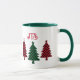 This holiday mug features charming Christmas trees in red and black and green and black buffalo plaid, with your or your recipient's monogram initials in fancy red typography above. Celebrate the holidays or nay day as you drink your yuletie coffee or sip your cinnamon spice tea. The cup shown here has a forest green coloured interior and handles, but you can change it to red, or choose other mug, cup, and stein options.