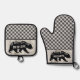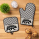 Rustic Buffalo Plaid Wood Cabin Black Bear Custom Oven Mitt & Pot Holder Set