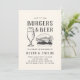 Casual "burgers & beer" engagement party invitations feature rustic style illustrations and a plaid backer. Perfect for summer or outdoor wedding rehearsal dinners, these casual chic invitations are easily customized with your celebration details.
