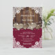 Rustic Burgundy Barn Wood Burlap Lace Wedding Invitation