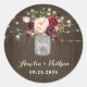 Rustic Burgundy Blush Floral Mason Jar Wedding Classic Round Sticker