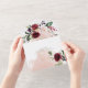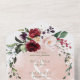 ALSO AVAILABLE WITH A QR CODE TO SCAN IN THE RSVP AREA. This design features a soft arch of marsala wine and pink roses with greenery and berries on a soft blush coloured watercolor splash background. Personalized All-In-One invitations are a unique combination of both a beautifully printed custom invitation with an easy to tear off perforated RSVP postcard. And they are so easy to use! You simply fold, then seal the back flap with the three included clear stickers, and mail. And when your guests receive your custom invite, they just tear the perforated RSVP Card off and drop it back in the mail to you!