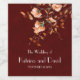 This wedding wine bottle label is so elegant, minimal floral details in burnt orange contrast beautifully with the rustic burgundy watercolor texture in the background. Thin yet elegant san serif font on white typography complete the design. Ideal wedding party supply and decor for a simple, yet elegant fall wedding.