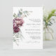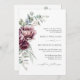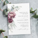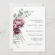 A romantic floral wedding invitation that captures the essence of rustic elegance with its arched bouquet of peonies and roses in harmonizing deep burgundy, plum, and dusty pink with trailing eucalyptus greenery. So beautiful for fall or winter weddings with its rich colour scheme. The feminine botanical elements pop with style and boho charm. Personalize the text template with your wedding details.