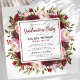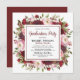 Square graduation party invitations featuring a plain white background that can be changed to any colour, an array of marsala red, burgundy & blush pink watercolor floral flowers, and a modern graduate party template.