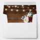Rustic country string lights and mason jar with burgundy, red, Marsala, maroon , ivory, blush colour floral bouquet and eucalyptus leaves on wood background wedding bridal shower custom envelope. Please contact me for any help in customization or if you need any other product with this design.