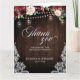 Rustic country string lights and mason jar with burgundy, red, Marsala, maroon , ivory, blush colour floral bouquet and eucalyptus leaves on wood background wedding invitation. Please contact me for any help in customization or if you need any other product with this design.