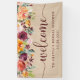 This stunning banner features trendy watercolor flowers in shades of marsala, burgundy, blush pink, and orange, with green leaves. The background is a tan, kraft paper look. Modern burgundy coloured typography says "welcome", making this banner perfect for any celebration including bridal showers, baby showers, graduations, and weddings.