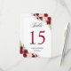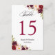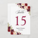 Rustic Burgundy Floral Wedding Table Number Card.