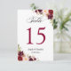 Rustic Burgundy Floral Wedding Table Number Card