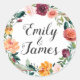 Rustic Burgundy Floral Wreath Wedding Monogram Classic Round Sticker