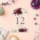Rustic Burgundy Ivory Floral Wedding Table Number