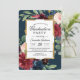 Rustic Burgundy Navy Blue & Red Floral Gold Frame Invitation