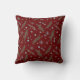 Rustic Burgundy Pine Branches Snowflakes Throw Pillow