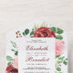 Rustic Burgundy Red and Blush Pink Floral Wedding All In One Invitation