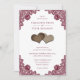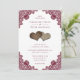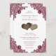 Invite your guests to your romantic rustic wedding party with these rustic burgundy wedding invitations featuring red floral lace and two burlap hearts.